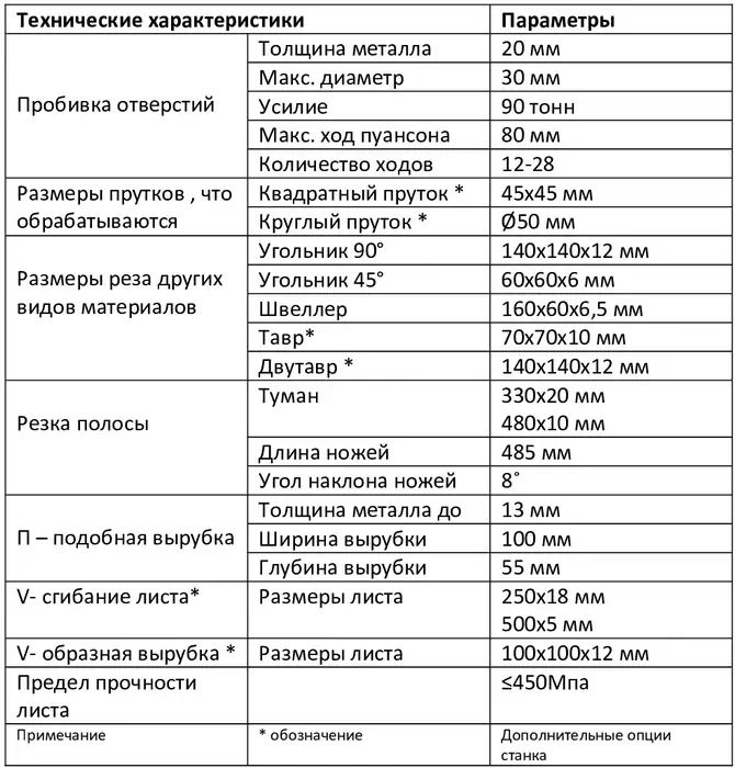 - 5 рабочих станций - пробивка отверстий, рубка уголка, рубка швеллера, гильотинные ножницы и вырубка