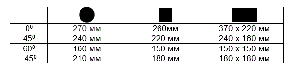 | Максимальний діаметр різу квадрату 90° | 260х260 мм |